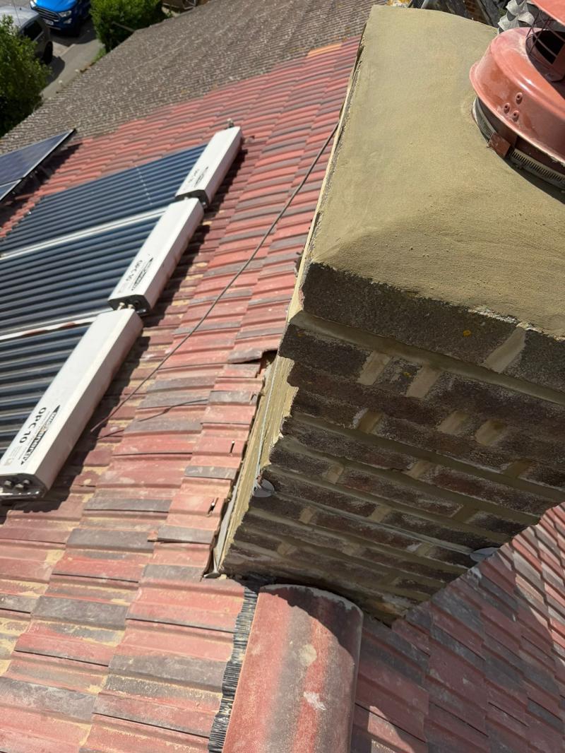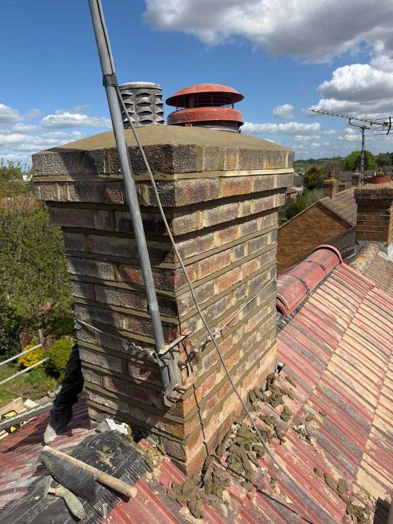 The chimney stack was carefully repointed, removing all failing mortar and replacing it with new, strong joints. This restores the structural integrity of the chimney and prevents water penetration, which is a common issue when mortar begins to break down .