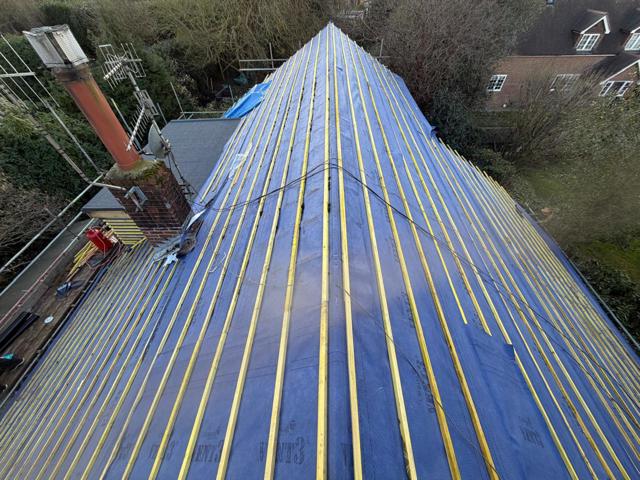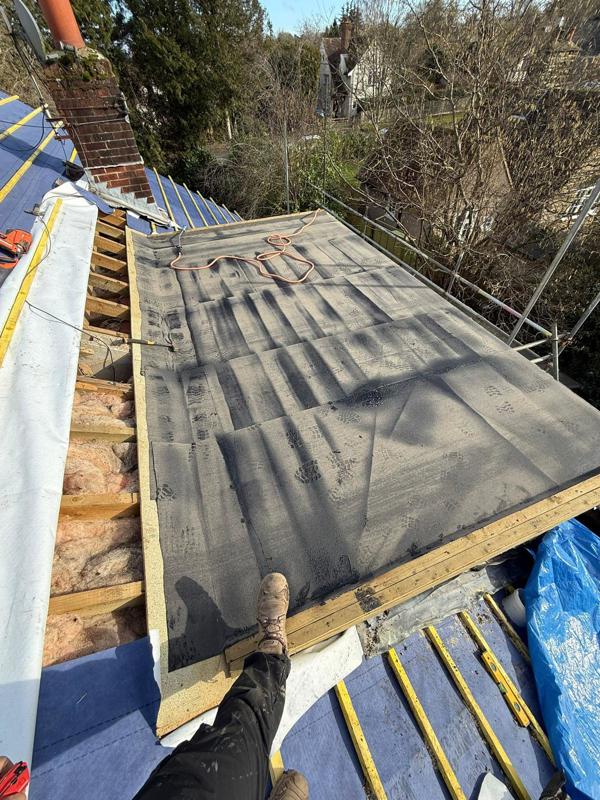 The existing roof coverings were carefully stripped back to expose the roof structure. New breathable roofing felt and treated timber battens were installed to current standards, providing improved weather resistance and ventilation before the tiles were reinstated.