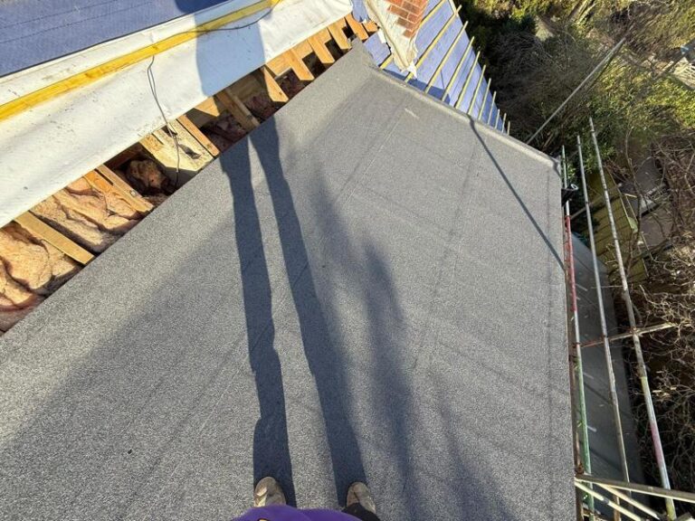 The flat roof covering to the dormer/extension was fully replaced. The old materials were removed, the deck prepared, and a brand-new high-performance flat roofing system installed to create a durable, watertight finish with clean, crisp edges.