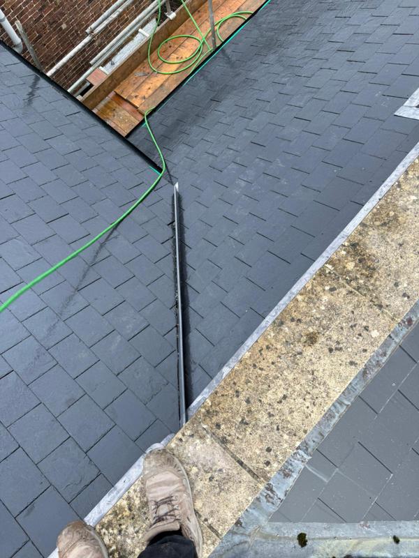 Natural slate tiles were installed across the pitched roof with precision and care. Chosen for their durability and timeless appearance, the slates were fixed to withstand the elements while blending seamlessly with the existing roofscape and neighbouring properties.