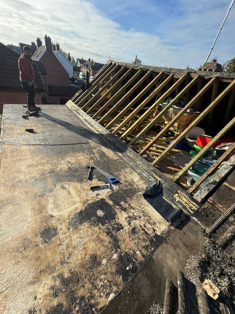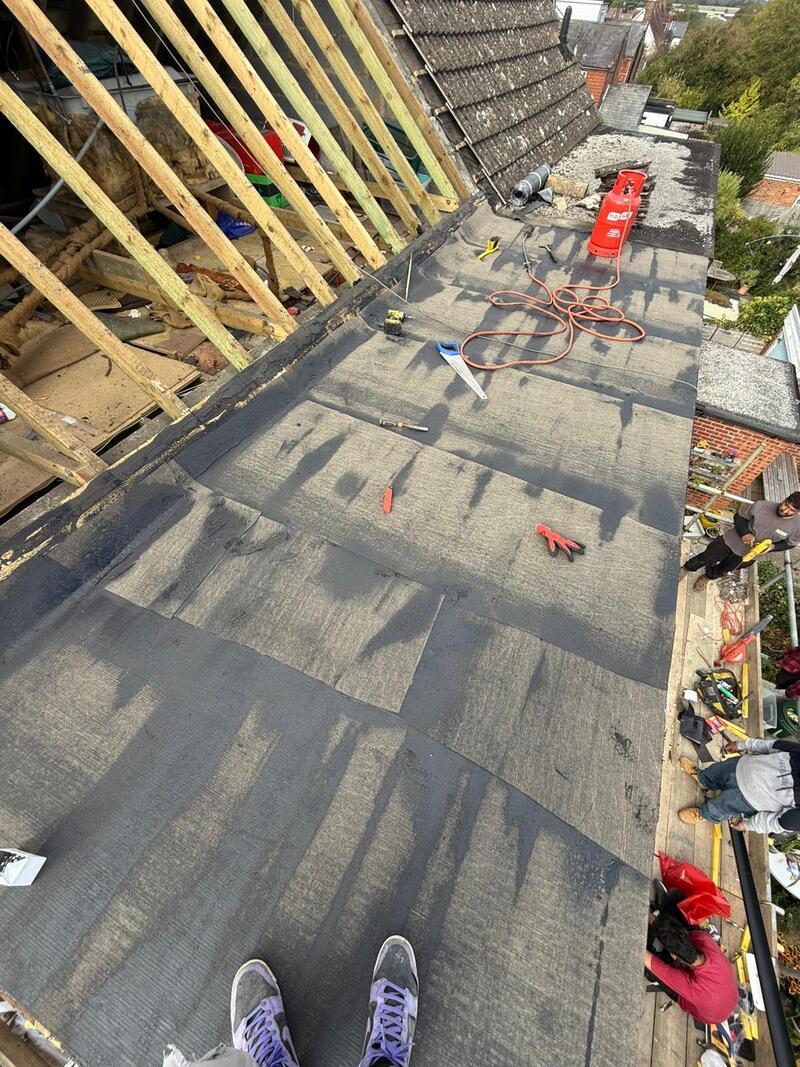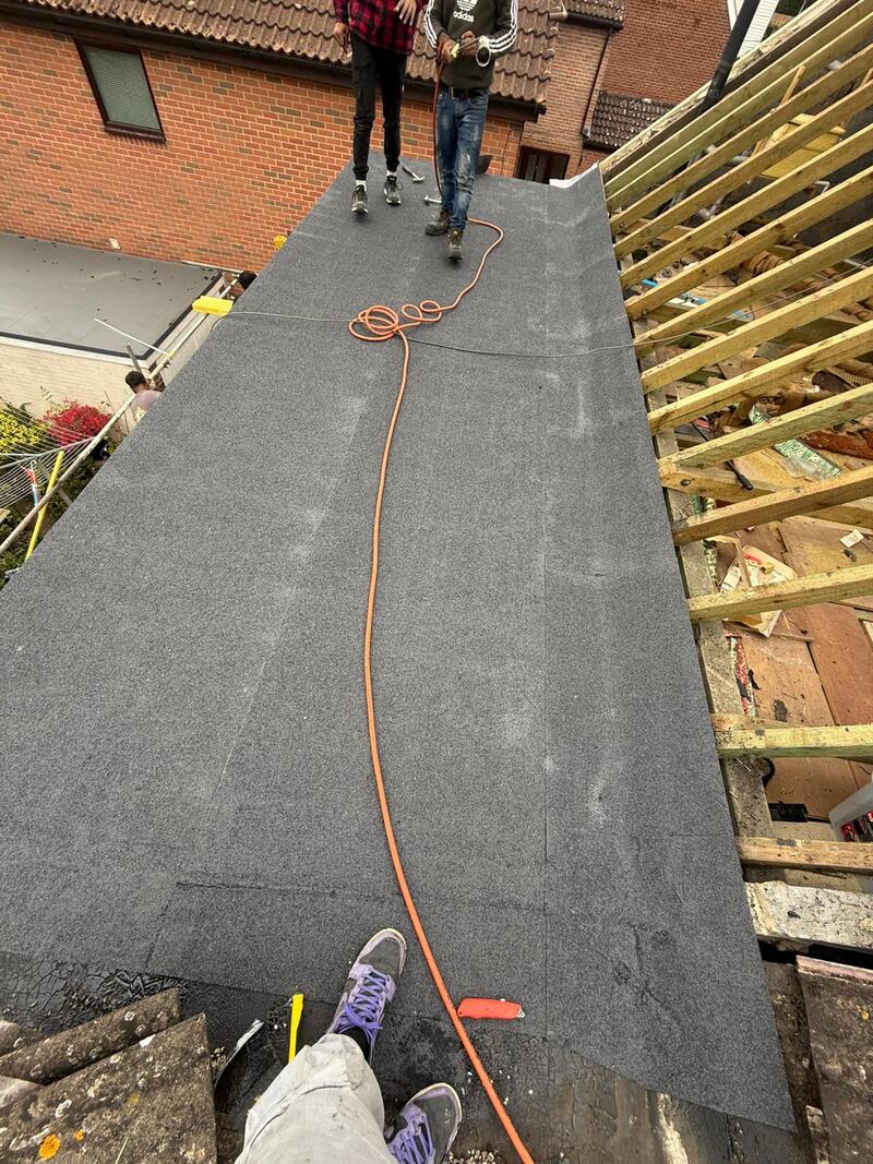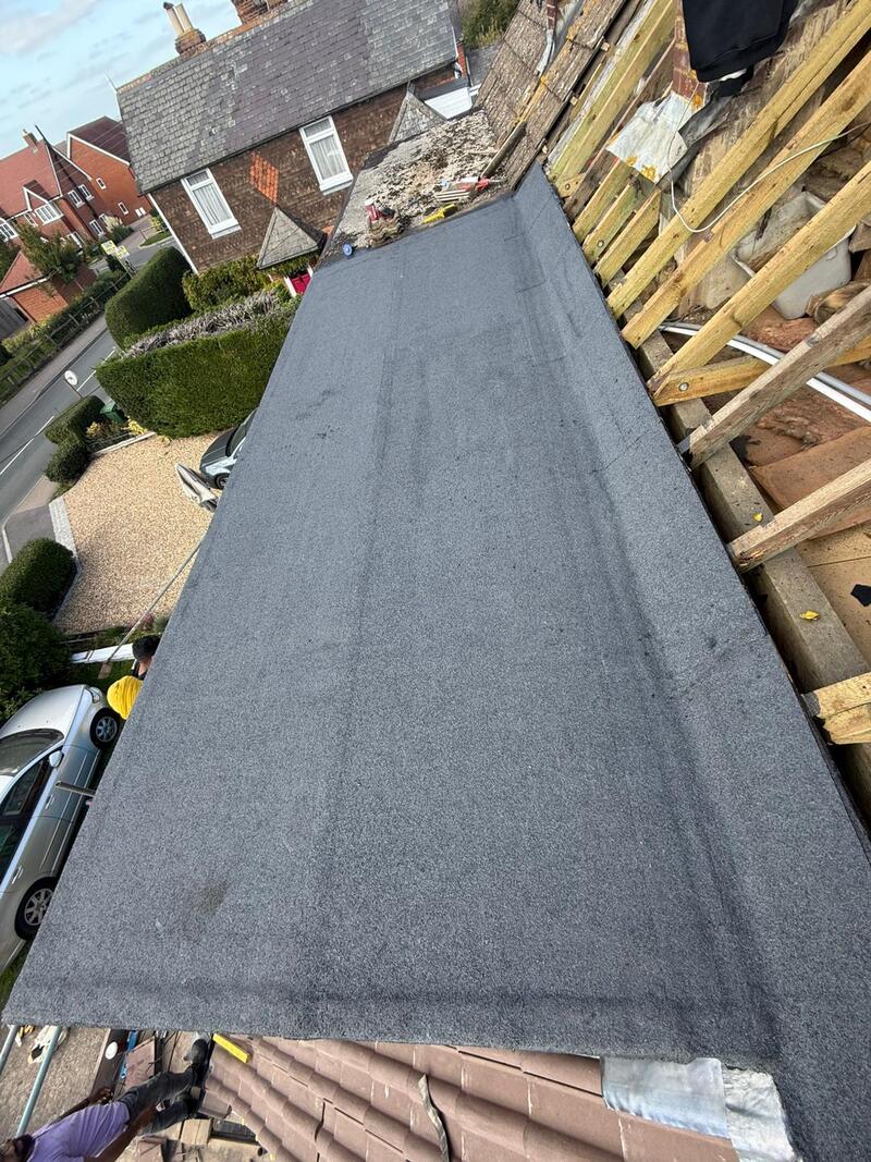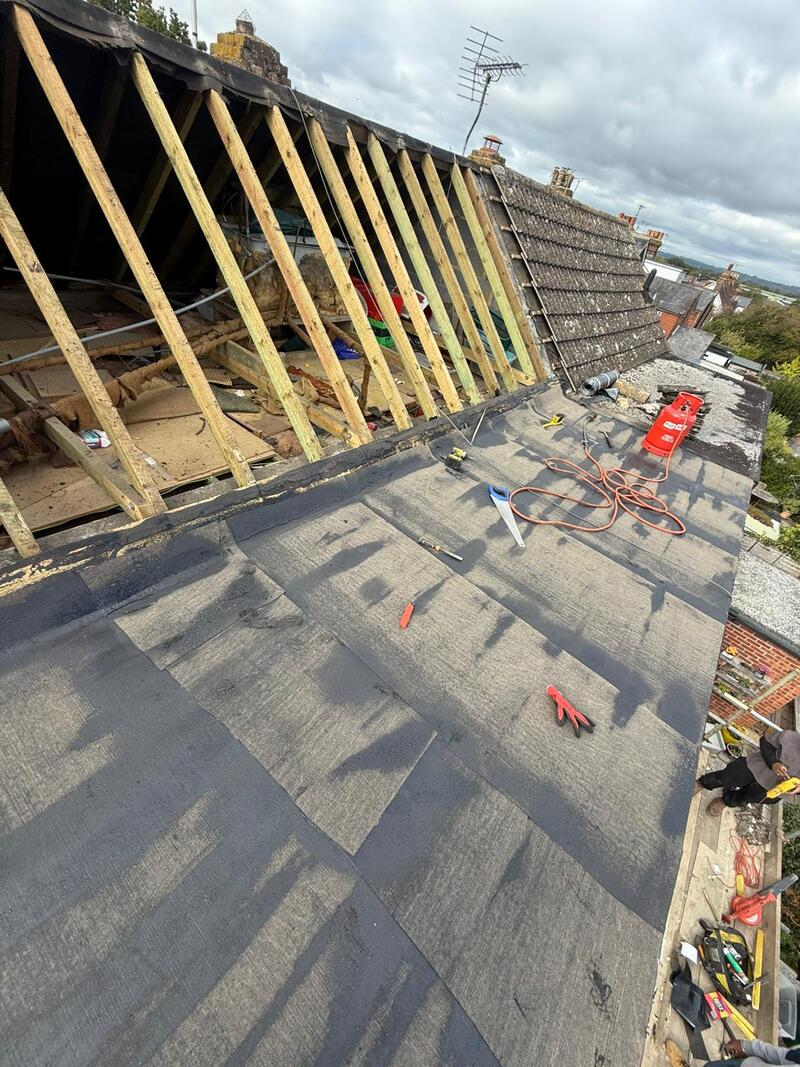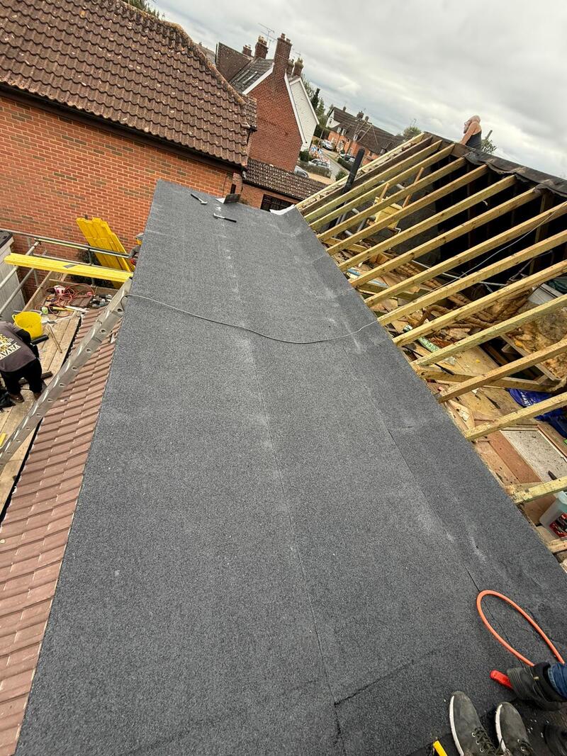 - This project also included refurbishing the adjoining flat roof section. We replaced the old covering with a durable felt system, applied with precision to deliver a smooth, watertight finish that seamlessly joins the pitched roof area.