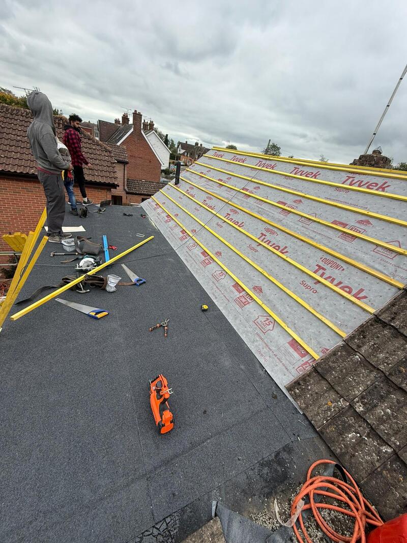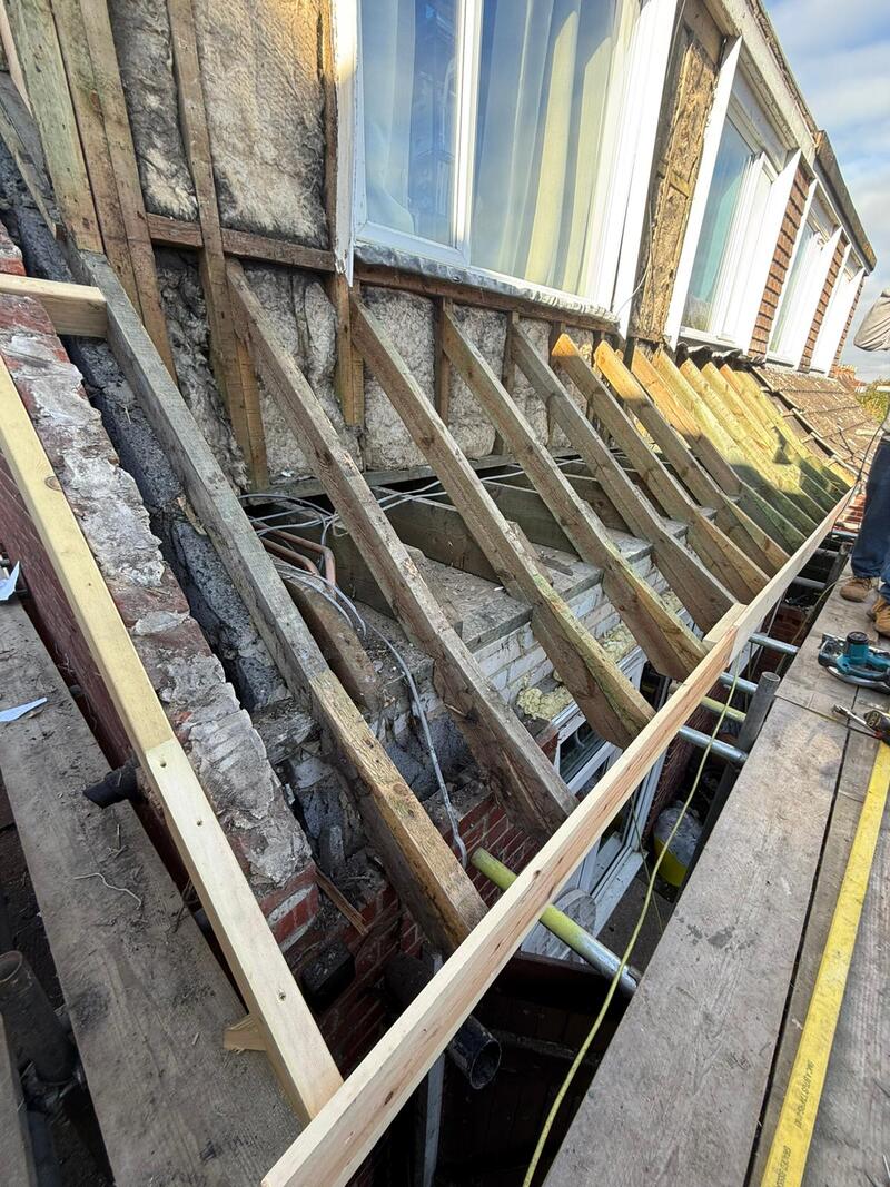 - The first stage involved removing the old roof covering, underlay, and battens to expose the structure beneath. Once cleared, our roofers carried out a detailed inspection of the rafters and timbers, replacing any weakened sections to restore structural integrity.